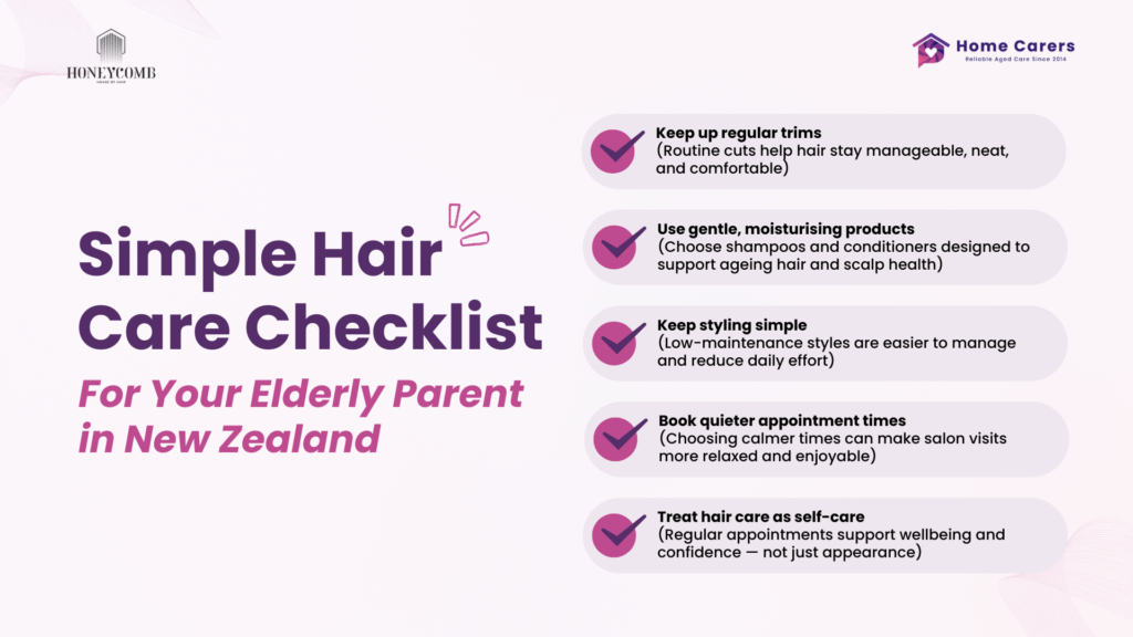 While Honeycomb House of Hair provides expert hair care and a confidence boost, Home Carers supports older adults with the practical steps that make salon visits easy and stress-free.