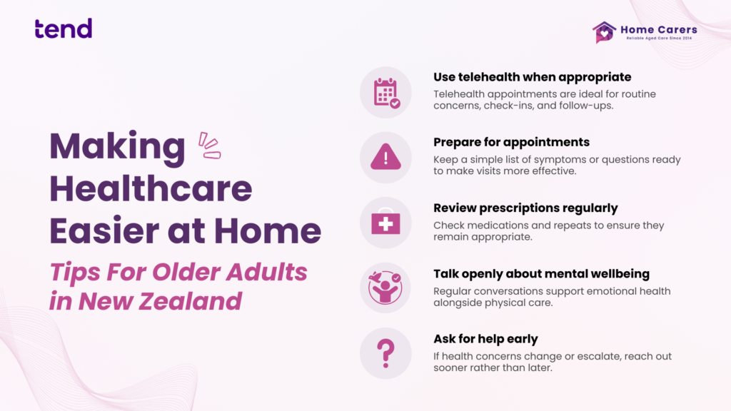 At Home Carers, we know that peace of mind comes from knowing help is accessible, responsive, and easy to use. That’s why we’re pleased to feature Tend Health, a modern healthcare service designed to make care simpler through a seamless blend of online and in-clinic support. Together, Tend Health and Home Carers help older New Zealanders access healthcare in ways that fit their lifestyle — whether that’s from the comfort of home or in a welcoming medical centre.